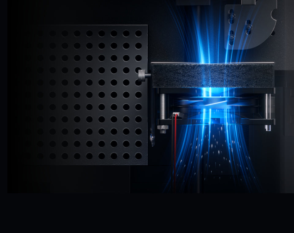 Système de filtration par adsorption - ce système absorbe la poussière et l'odeur de l'encre, protégeant ainsi les composants internes de l'imprimante et créant un environnement de travail frais et propre.