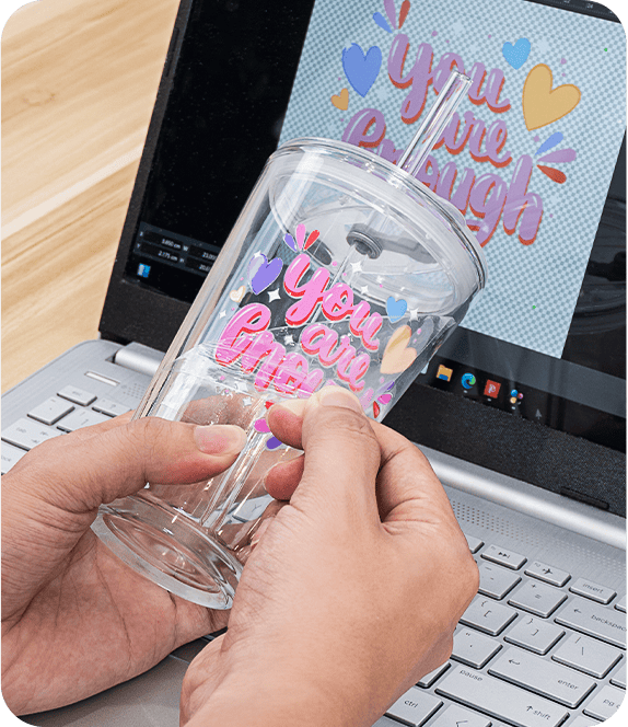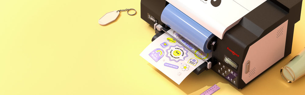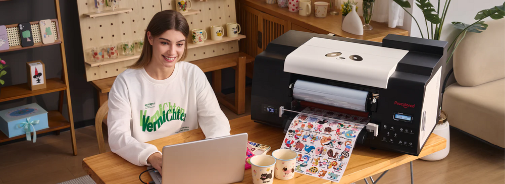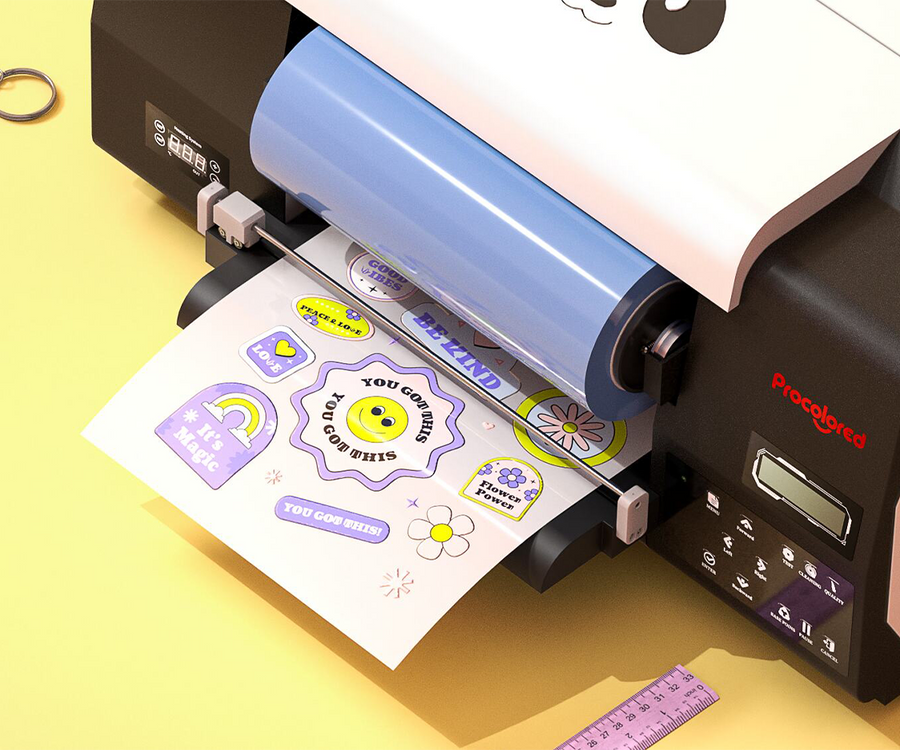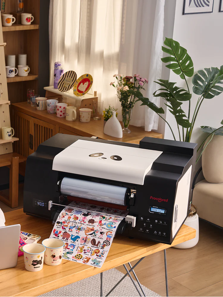 La mini imprimante UV DTF Procolored est une imprimante UV DTF deux-en-un, combinant les fonctions d'impression et de laminage. C'est une machine idéale pour la fabrication d'autocollants en cristal. Le processus de travail comprend généralement l'impression (d'abord sur un film A), le laminage (film B) et le transfert (du film A vers le film B). Les autocollants en cristal peuvent être collés sur des objets irréguliers, dépassant ainsi les limites de l'impression directe. Ils peuvent être conçus et personnalisés comme des décorations pour tasses, des logos d'entreprise accrocheurs ou de jolis autocollants pour enfants, et bien plus encore. Avec une mini imprimante UV DTF, vous pouvez réaliser toutes les décorations que vous avez imaginées.
