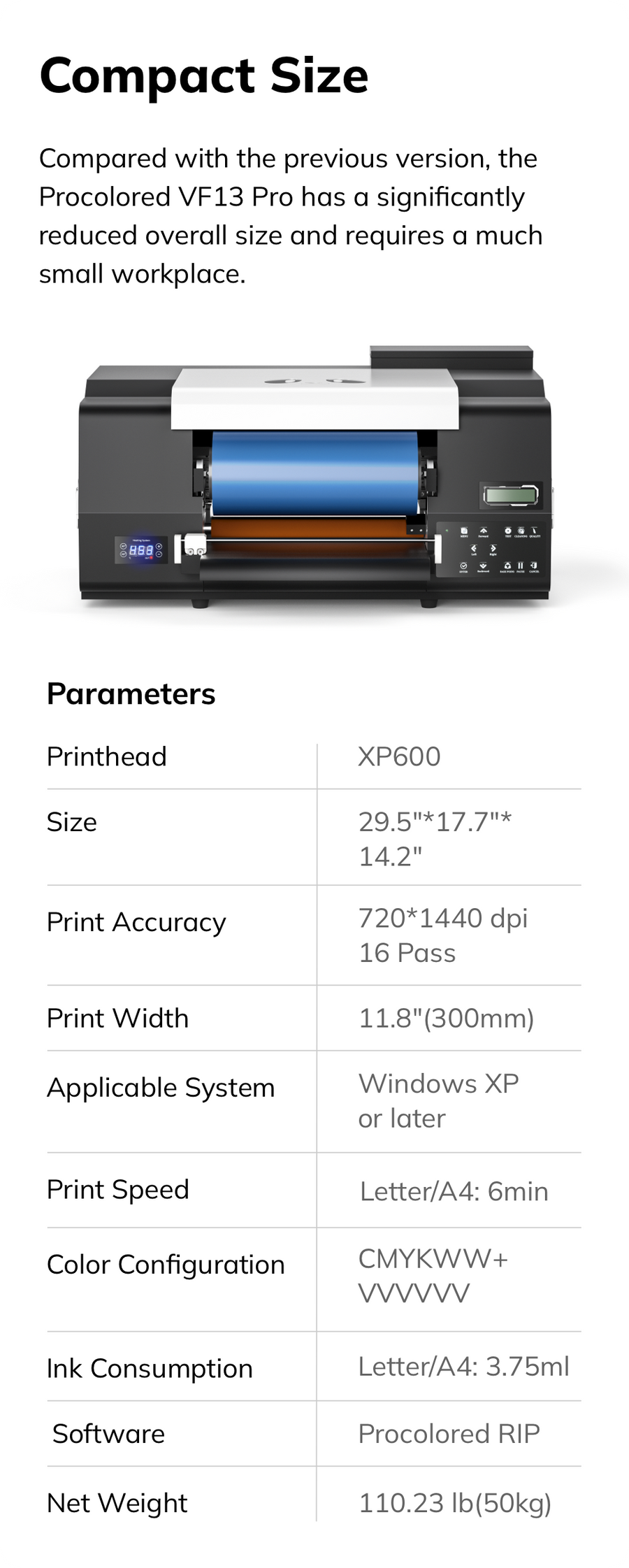 Imprimante UV DTF Procolored VF13 Pro Panda 13'' A3+ Dual XP600 2-en-1