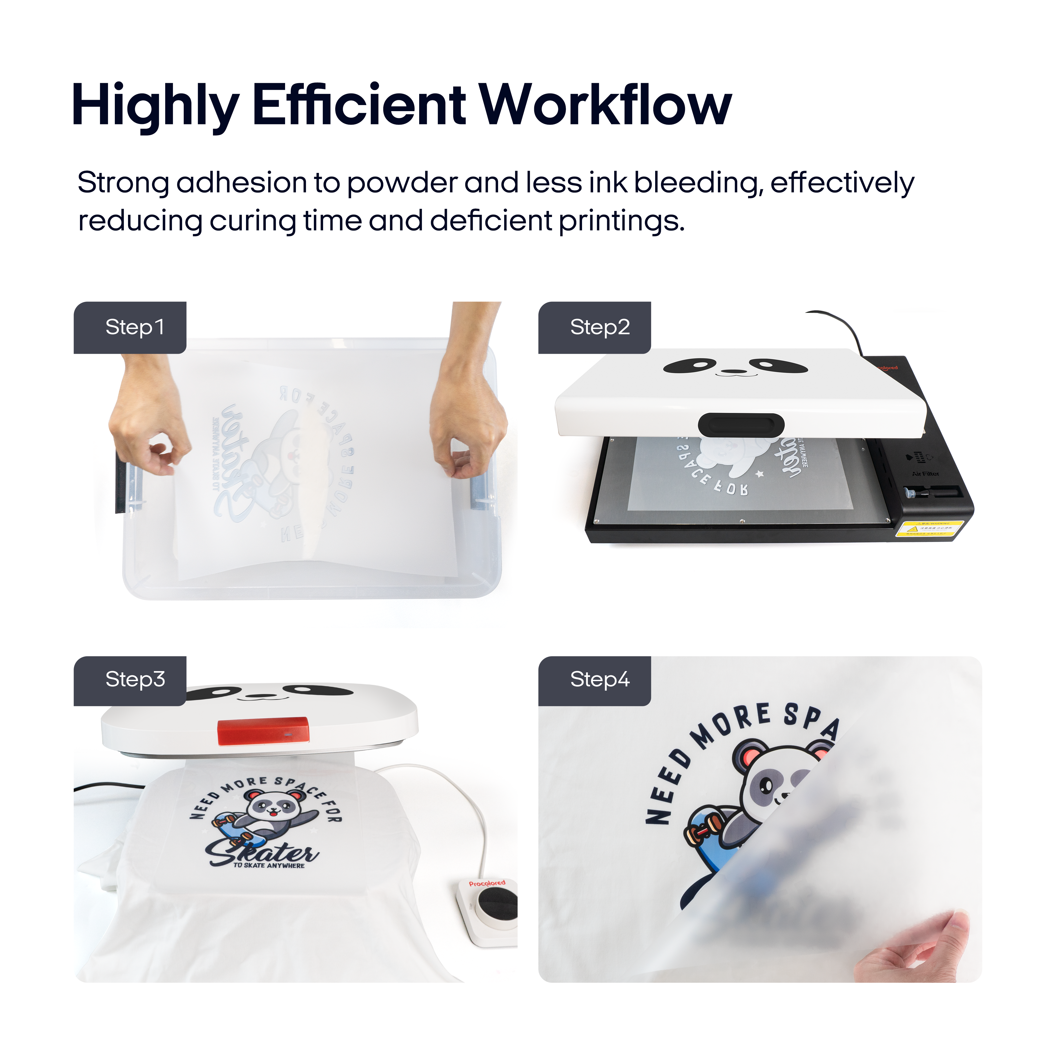 Avec leurs composants chimiques, leur viscosité et leur vitesse de séchage spécifiques, les encres DTF Procolored sont conçues pour s'adapter parfaitement aux films et imprimantes Procolored.