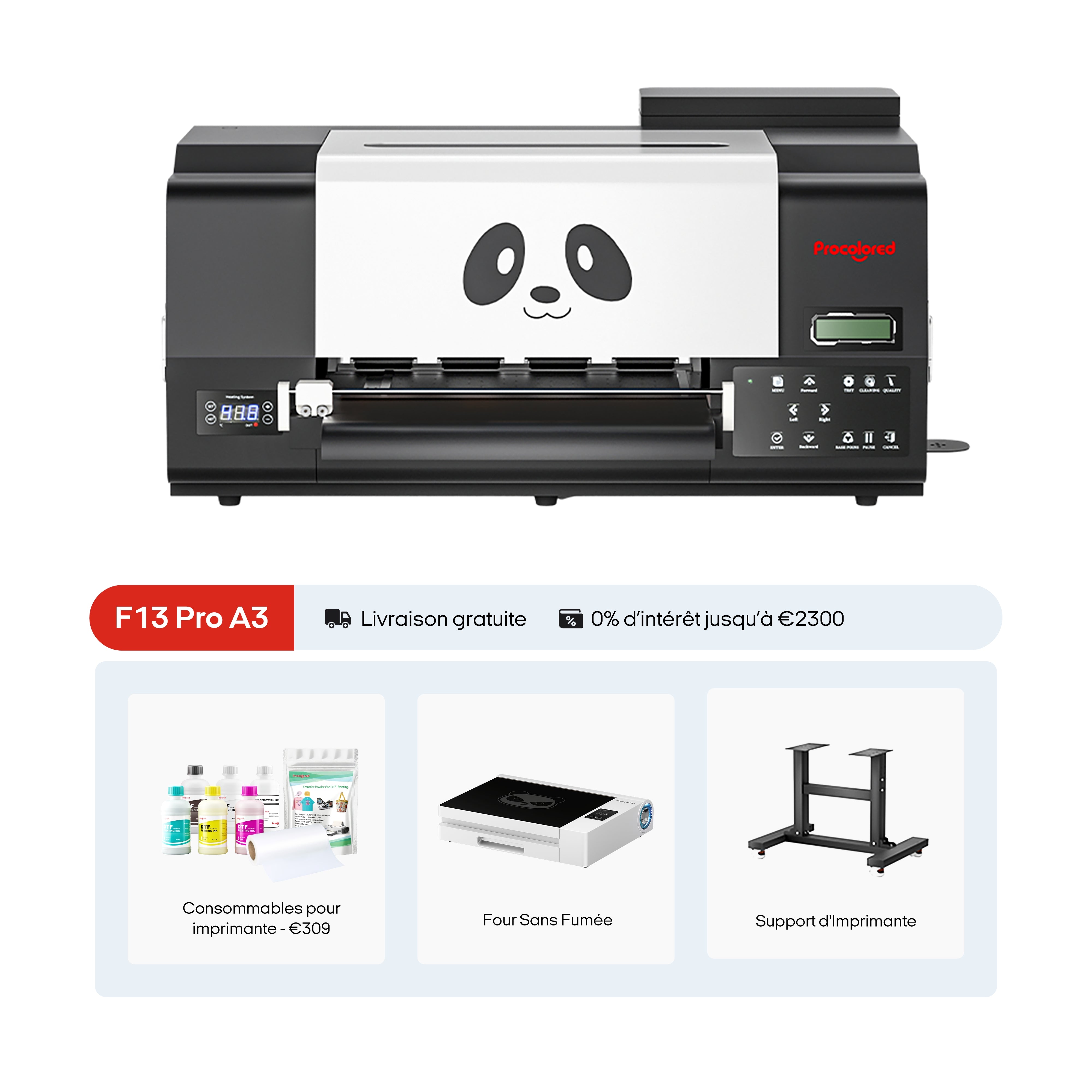 Imprimante Procolored F13 Pro Panda DTF 13 pouces A3 Double XP600 & Support & Four Premium