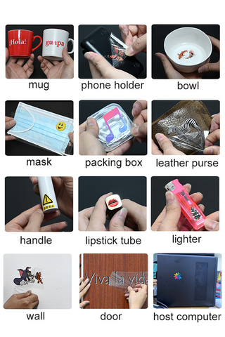 Caractéristiques : haute transparence, épaisseur et dureté appropriées, auto-adhésif, durable, résistant aux ultraviolets/hautes températures/à l'eau/à l'abrasion, facile à séparer/utiliser/appliquer, reproduction exceptionnelle des couleurs, effet 3D de haute qualité, compatible avec des effets supplémentaires or/argent/laser.